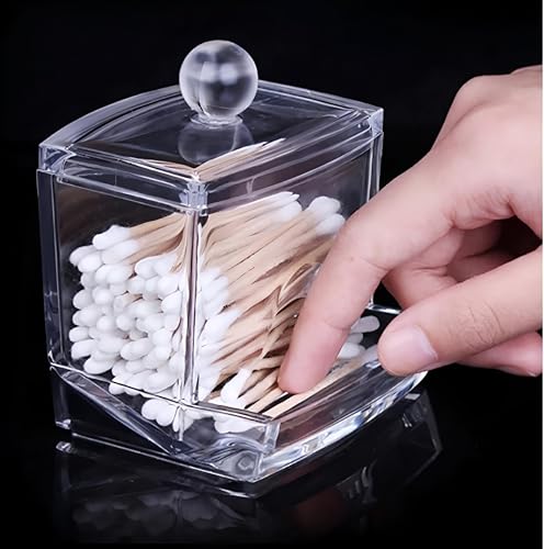 - One of the notable features of this cotton stick holder is the cover attached. The clear acrylic cover not only adds a stylish touch but also provides easy access to contents. Cotton picks can be easily distributed from the bottom of the stand, making it a practical option for everyday use. Lid helps keep cotton picks neat and clean, protecting them from dust and moisture.