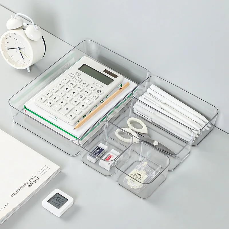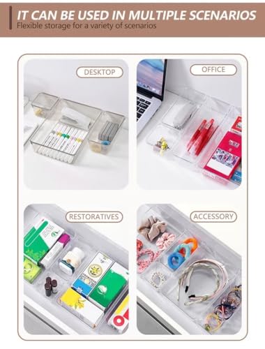 Generic - Clear Desk Drawer Organizer 8 Pack – 3 Different Sizes (4 Small, 2 Medium, 2 Large) – Versatile Storage Bins for Office, Bathroom, Kitchen – Perfect for Cosmetics, Jewelry, and Accessories