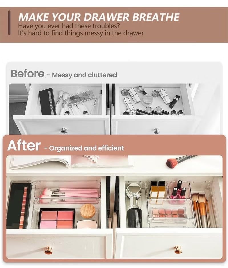 - Flexibility in order and use: trays can be used separately in drawers or over surfaces as needed, making them perfect for home or office.