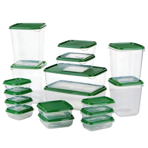 Generic - أوعية شفافة لحفظ الطعام - مجموعة من 17 قطعة لتنظيم المطبخ والتلاجة، قابلة للاستخدام في المايكروويف والفريزر والغسالة مع تصاميم مختلفة تناسب جميع الاحتياجات اليومية