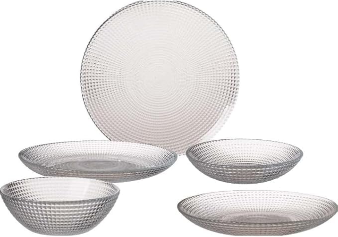 - COMPLETE SET: 30 Piece Clear Glass Dinner Set, Includes Various Size Plates For Different Uses