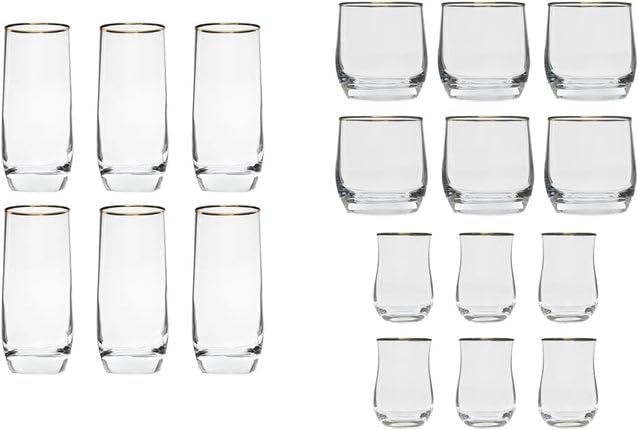 Generic - Clear Glass Drinkware Set with Gold Rim, Includes Highball, Whiskey, and Tea Glasses, 18 Pieces