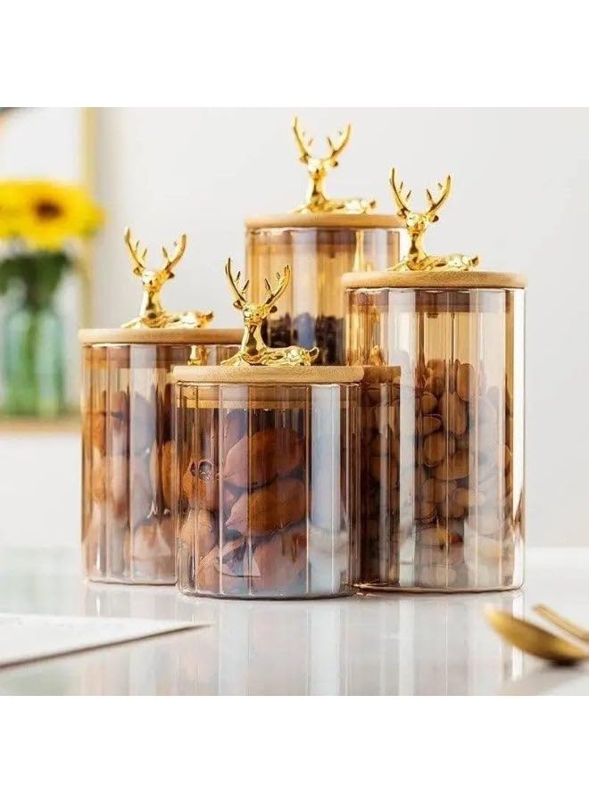 Generic - برطمان زجاجي شفاف مع غطاء خشبي على شكل غزال، محكم الغلق