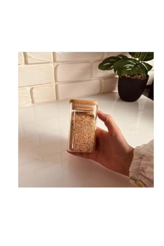 Generic - برطمان زجاجي شفاف مع غطاء خشبي محكم الغلق مانع للتسرب للمطبخ والمكسرات والشاي والسكر والقهوة والتوابل والماسالا والهدايا، يستخدم في المقاهي والمطاعم والفنادق والنحت (150 مل، 6 قطع)