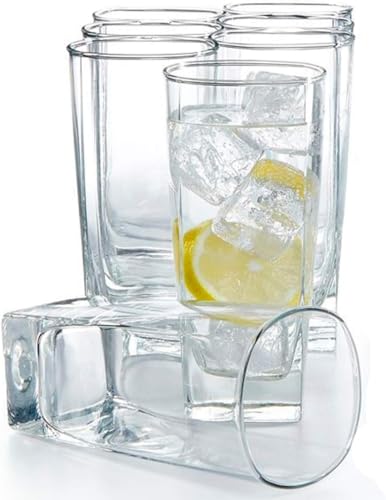 Generic - Clear Glass Mug Set – Square Heavy Duty Drinking Glasses for Everyday & Entertaining – Perfect for Iced Drinks, Juices, Cocktails & More (Transparent (6 pieces))
