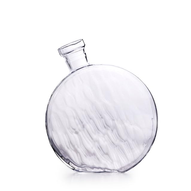• تصميم أنيق: زجاجة زجاجية مستديرة مسطحة على شكل قرص تتميز بنمط دوامة رخامية بيضاء مذهلة لمظهر زخرفي فاخر