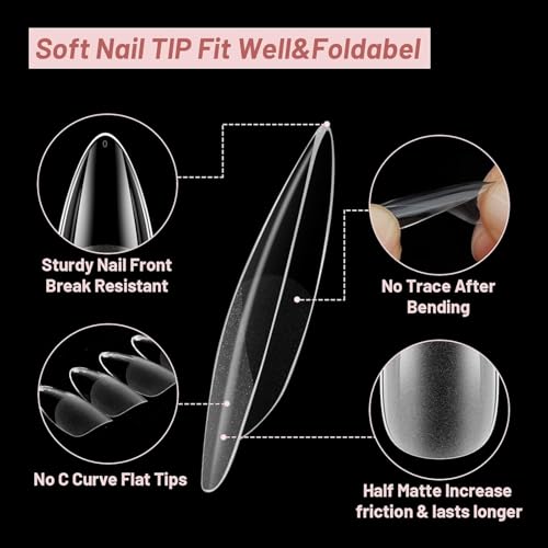 - Soft gel nail tips: These ultra-thin and comfortable tips for gel nails are perfect for gentle extension of the natural nail. With traceless nail tips set with jelly adhesive, longer and super stable nails can be modeled, and the shape can be shortened and filed as desired.