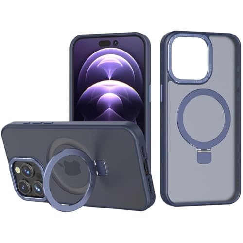 Generic - جراب حماية مغناطيسي شفاف مع حامل متوافق مع الشحن اللاسلكي ومضاد للصدمات من البولي يوريثين المقاوم للحرارة الناعم لموبايل ايفون 15 برو ماكس 6.7 بوصة (لون أزرق)