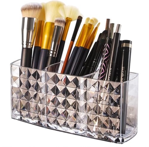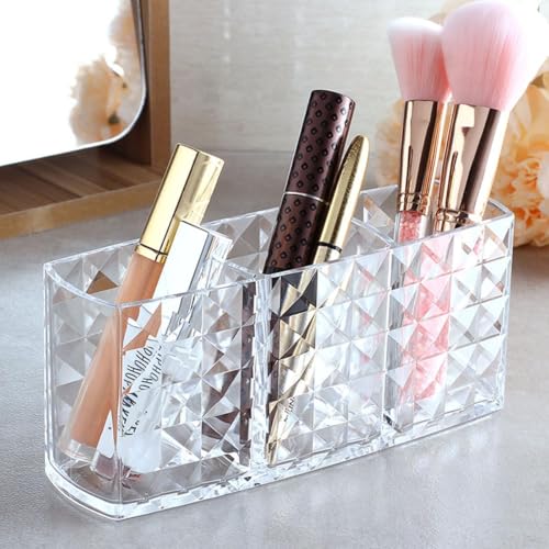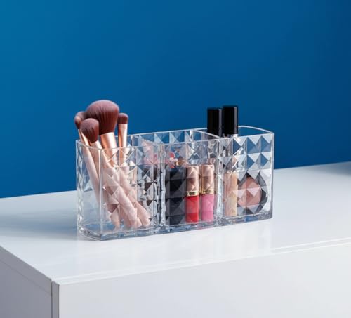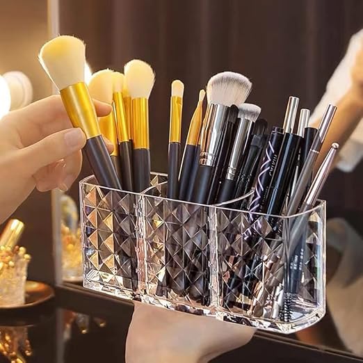 Generic - Clear Makeup Brush Organizer and Holder – Elegant Design with 3 Slots for Cosmetic Brushes Storage – Modern Shape Provides Perfect Table or Dresser Arrangement – Practical and Easy to Clean