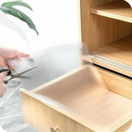 Generic - لفة بطانة أدراج شفافة غير لاصقة - مفرش رفوف مقاوم للماء لخزائن المطبخ والثلاجة وخزانة الملابس | مضاد للانزلاق ومقاوم للزيوت وقابل للغسل من سيليكون ايفا (لون أبيض شفاف)