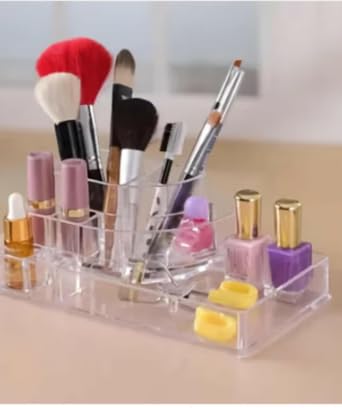 Generic - منظّم شفاف مزوّد بـ 9 مساحات عميقة لحفظ أحمر الشفاه والفرش وطلاء الأظافر – مصنوع من اكريليك عالي الجودة ومتين