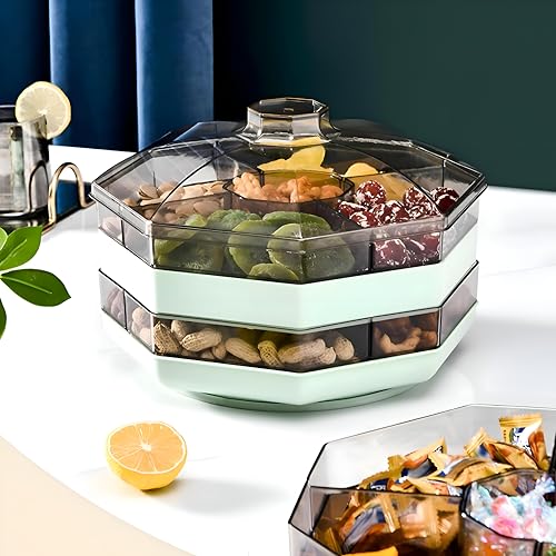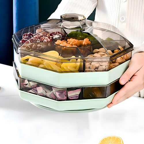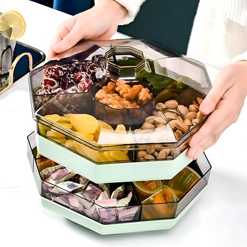 - This double-layer serving tray features five distinct compartments, allowing for organized presentation and storage of diverse snacks like chips, dips, cheeses, fruits, and desserts, making it ideal for entertaining guests at family gatherings or holiday parties.