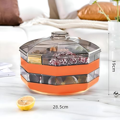 - With a diameter of 28.5 cm and a total height of 19 cm, the tray’s compact double-layer design maximizes space efficiency while providing ample room for a variety of appetizers and snacks.