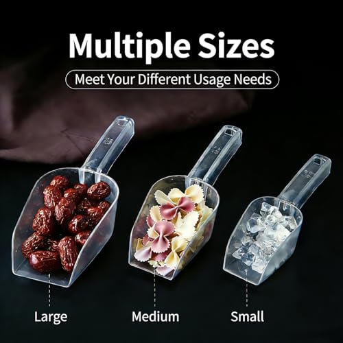 YQLDAHU - Clear Plastic Ice Scoop Set, Small Acrylic Serving Scoops For Candy, Canisters, Dry Goods Multi-Purpose Kitchen Food Scoop For Coffee, Tea, Flour, Wedding Desserts (3pc/Large/Medium/Small)