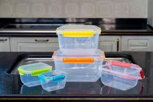 Generic - Clear Plastic Storage Containers, Set of 5, Colorful Airtight Lids