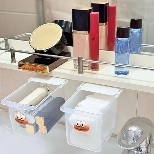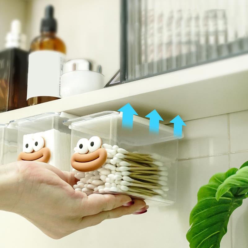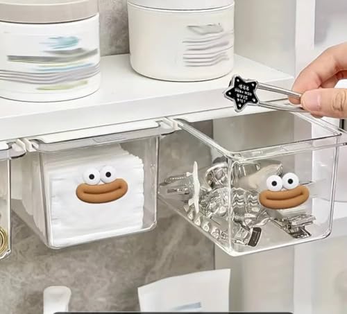 Generic - Clear Storage Box with Lid, Cartoon Face, Acrylic Plastic, 12x8x8cm, 2 Pack Double Face Drawer Organizer