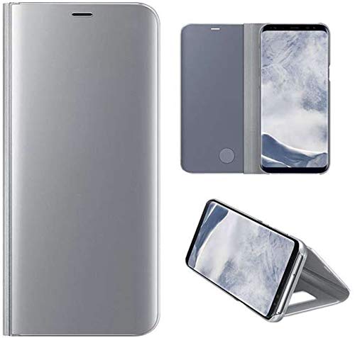 Generic - مراة قائمة كلير فيو بدون مستشعر خارجي، ليست ذكية لموبايل اوبو A3S / A5 - فضي، حافظة بسيطة، أكريليك ألياف كربونيه