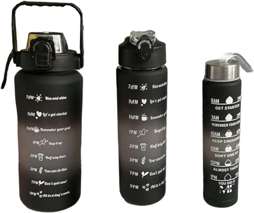 - ✅【سعة متنوعة】يوفر الطقم ثلاثة أحجام مختلفة (2 لتر، 1 لتر، نصف لتر) لتلبية جميع احتياجاتك اليومية، حيث يمكنك استخدام الزجاجة الكبيرة للاستخدام الطويل في المنزل أو النادي، والزجاجة المتوسطة أثناء التنقل، والصغيرة للرحلات القصيرة أو التمارين، مما يمنحك حرية الاختيار ويوفر لك الراحة في إدارة كمية الماء المطلوبة بسهولة وفعالية دون الحاجة لشراء زجاجات إضافية. 💧