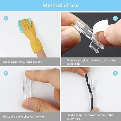 Daga - منظم أسلاك شفاف، مشابك كابلات شفافة شديدة التحمل مع لاصق قوي للسيارة والمكتب والمنزل، مجموعة من 20 قطعة