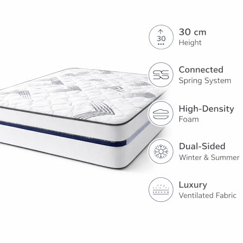 Larouche - Clemence 30 cm Connected Spring Mattress – High-Density Foam, Dual-Sided Winter & Summer, Luxury Fabric, Ventilated Design (200 * 160)