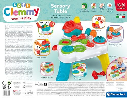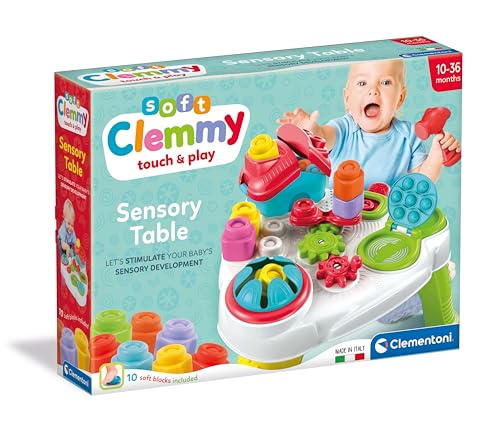 Clementoni - طاولة ناعمة حسية - مع مكعبات بناء ناعمة وألعاب للأطفال الرضع والأطفال الصغار من عمر 10 أشهر - لعبة حسية مع مكعبات بناء من كليمنتوني 17704