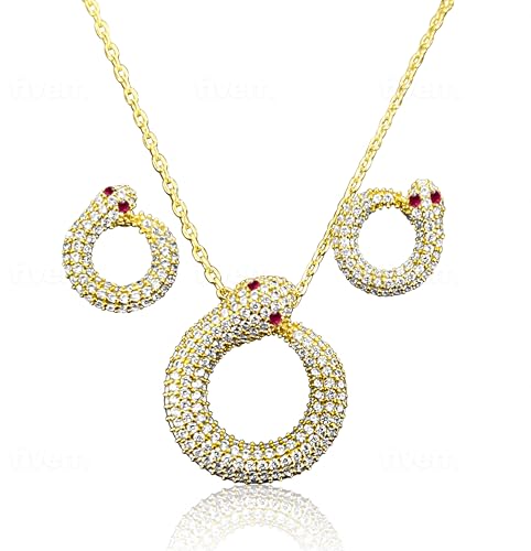 Generic - Cleopatra 18k Gold Plated Snake Set (Necklace And Earings)-Handmade-Elegant Jewellery,Best Gift For Her. red eye