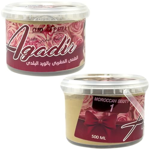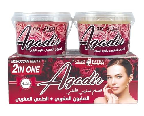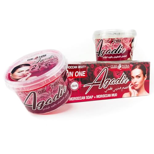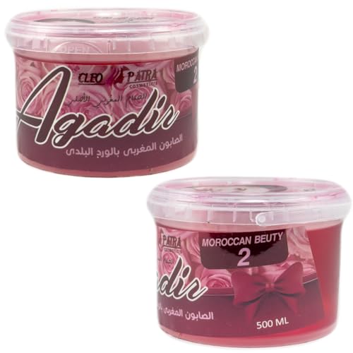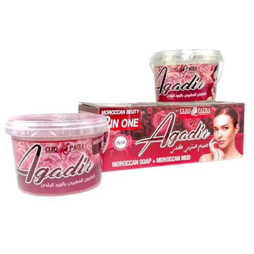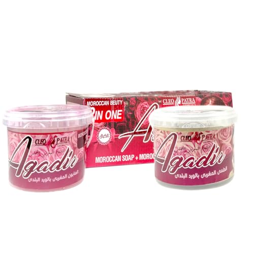 Generic - صابون مغربي وطمي مغربي كليوباترا - 2 × 1، عناية طبيعية بالبشرة، للتنظيف العميق والتبييض، 500 مل لكل برطمان (بالورد البلدي)