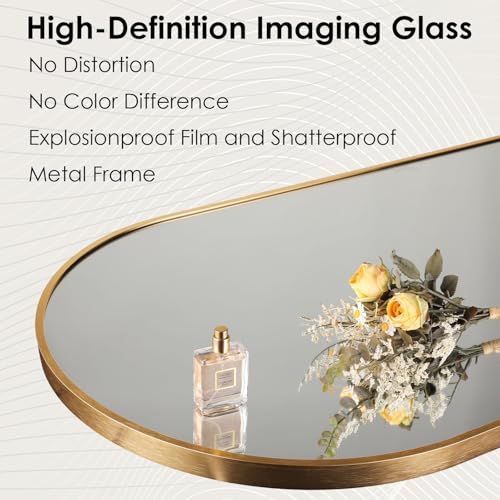- إطار معدني بتصميم قوس: يوفر الإطار المصنوع من الألومنيوم المتين حماية إضافية للمرآة وعمر خدمة طويل ويتميز بتصميم كلاسيكي متعدد الاستخدامات بحافة قوس باللونين الأسود والذهبي يناسب أي نمط غرفة..