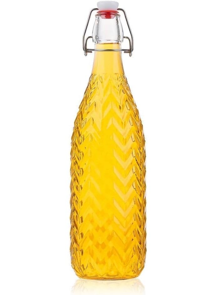 generic - زجاجة مياه زجاجية بخاصية النقر لرؤية كاملة مع غطاء علوي متارجح، تصميم مضلع، سعة 1 لتر