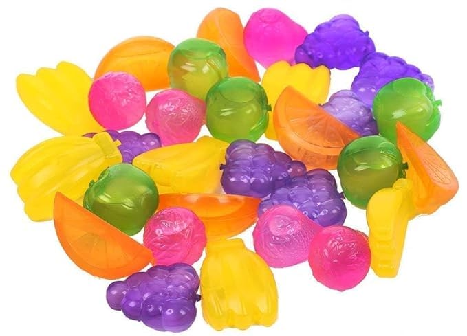 - مجموعة متنوعة من الألوان: تتضمن أشكالًا متعددة مثل العنب والفراولة والتفاح وشرائح الحمضيات بألوان أرجوانية وأحمر وأخضر وأصفر نابضة بالحياة