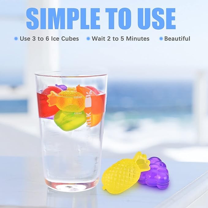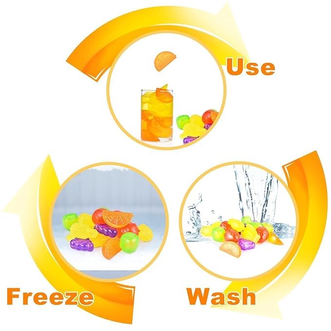 - فواكه صناعية: باستثناء سائل التبريد، يمكنك أيضًا استخدامها ككيس ثلج للإصابات، كمبرد صغير وكيس ثلج لتناول الطعام والمشروبات في الخارج، أو تجميدها واستخدامها في صندوق الثلج الحسي في المدرسة. تعمل بشكل مثالي ولن تحصل على الماء في كل مكان عندما تذوب، مكعبات الثلج اللطيفة على شكل فاكهة مرحة وملونة، ويمكن أن تضيف إضافة رائعة إلى البار والحفلة.