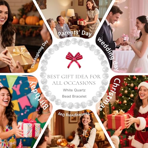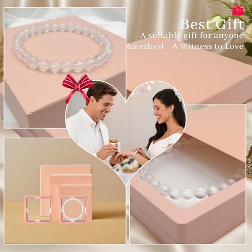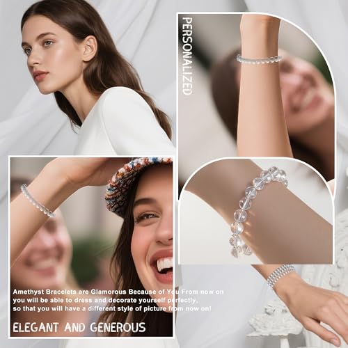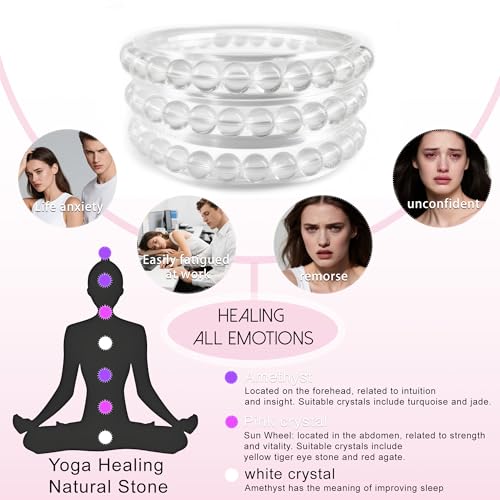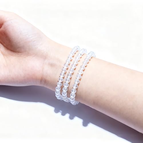 Clilopoal - 3 Pcs Natural Crystal Bead Bracelet Handmade Semi-Precious Stone Bracelet 6mm Healing Round Stretch Bracelet for Yoga Sleep Relieve Anxiety Jewelry Gifts