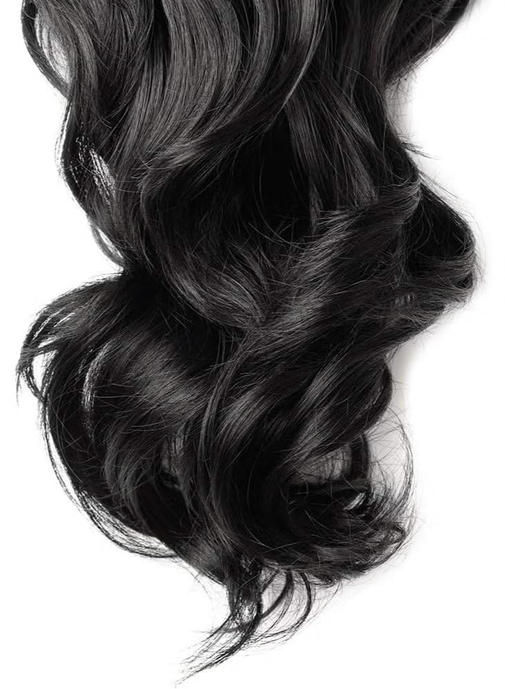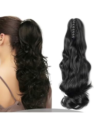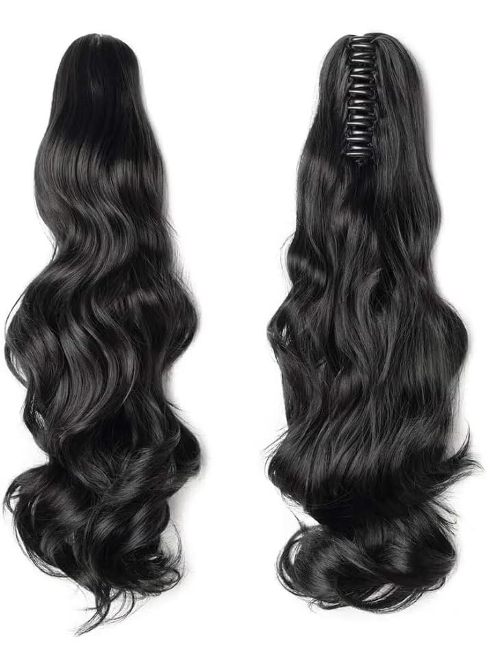 Generic - Clip-in Ponytail Extension – 18 Inch Long Curly Wave Wrap Around Hairpiece – Jet Black Synthetic Heat-Resistant Fiber – Secure Claw Clip Ponytail for Women & Girls – Instant Length & Volume (Black)