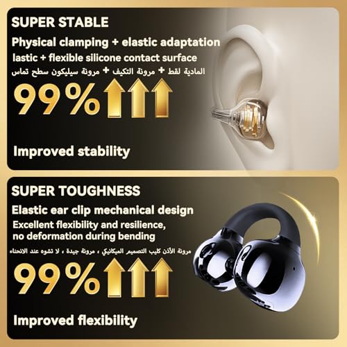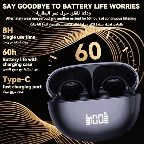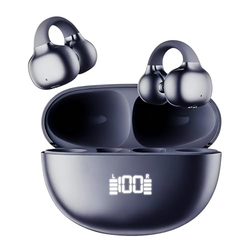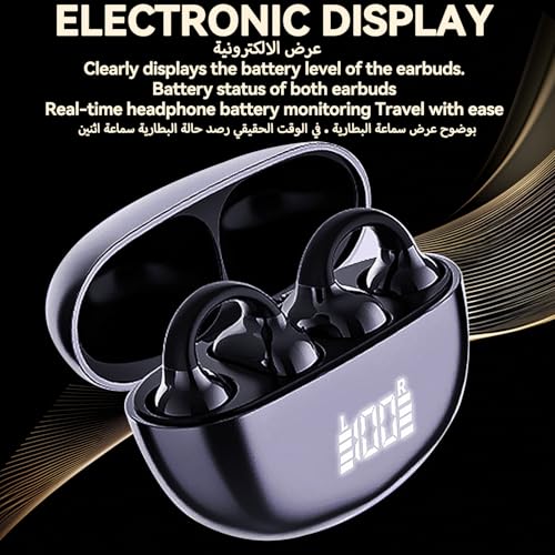 BNARQP - سماعات اذن بمشبك، سماعات اذن مفتوحة بلوتوث 6.0 مع علبة شحن بشاشة LED رقمية، وقت تشغيل 30 ساعة، مقاومة للماء بدرجة IPX5، خفيفة الوزن ومريحة، للتمارين والجري وiOS واندرويد