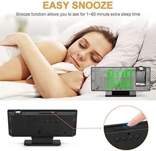 - استيقظ في الوقت المُحدّد، حتى وأنت وأنت في مناصف النوم: تعرض ساعة المنبه الرقمية هذه الوقت على الحائط أو السقف، حتى تتمكن من التحقق من ذلك على الفور دون رفع رأسك - مثالية لأيام العمل المبكرة أو الامتحانات أو الجري المدرسي.
