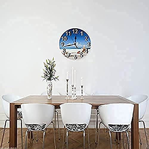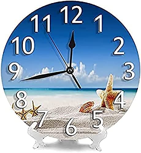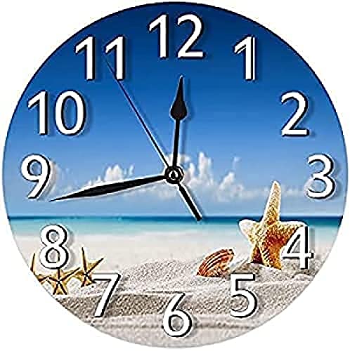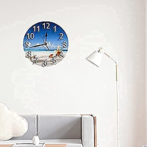 generic - Clocks for Living Room Non Ticking Summer Beach Wall Clock, Sky Blue Sand Starfish Seashell Round Battery-Powered Wall Clocks Decorative Gift
