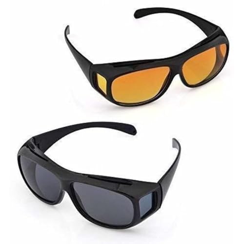 Clopic - نظارة شمسية كلاريتي من كلوبيك - حماية الأشعة فوق البنفسجية بنسبة 100% للاستخدام أثناء القيادة النهارية والليلية مضادة للوهج للرجال والنساء عبوة قطعتين أسود وأصفر