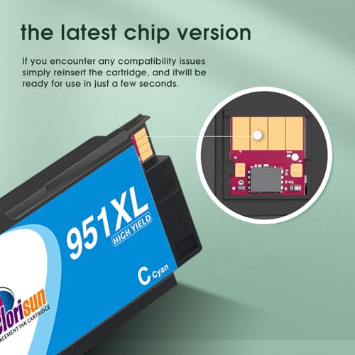 - 【طباعة رائعة】: يمكن أن توفر خراطيش حبر كلوريسون عالية الإنتاجية لإتش بي 951 951XL نصوصًا ورسومات واضحة وطباعة تأثير اللون الذي تريده على الورق، ويمكن للشرائح الذكية عرض مستوى الحبر على طابعتك، يرجى عدم لمس الشريحة أثناء التثبيت.