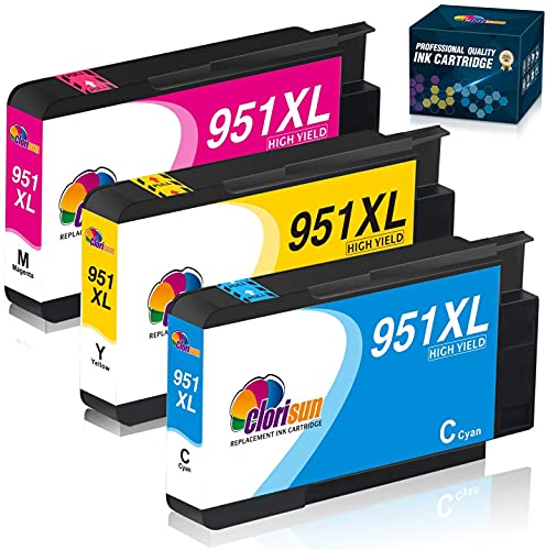 Clorisun - خراطيش حبر كلوريسون 951 951 إكس إل لطابعات إتش بي متوافقة مع عبوة خراطيش حبر إتش بي 951XL كومبو 3 ألوان لطابعة إتش بي أوفيس جيت برو 8600 8610 8620 8100 8625 8630 8615 (سماوي، أرجواني، أصفر)