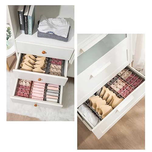 - The organizer provides four sizes to fit a variety of elements. It includes 6 cells for underwear, 7 bra cells, 8 socks cells, and 24 cells for veils or accessories. These versatile storage options allow you to organize clothes, as well as other household items, making it extremely practical.