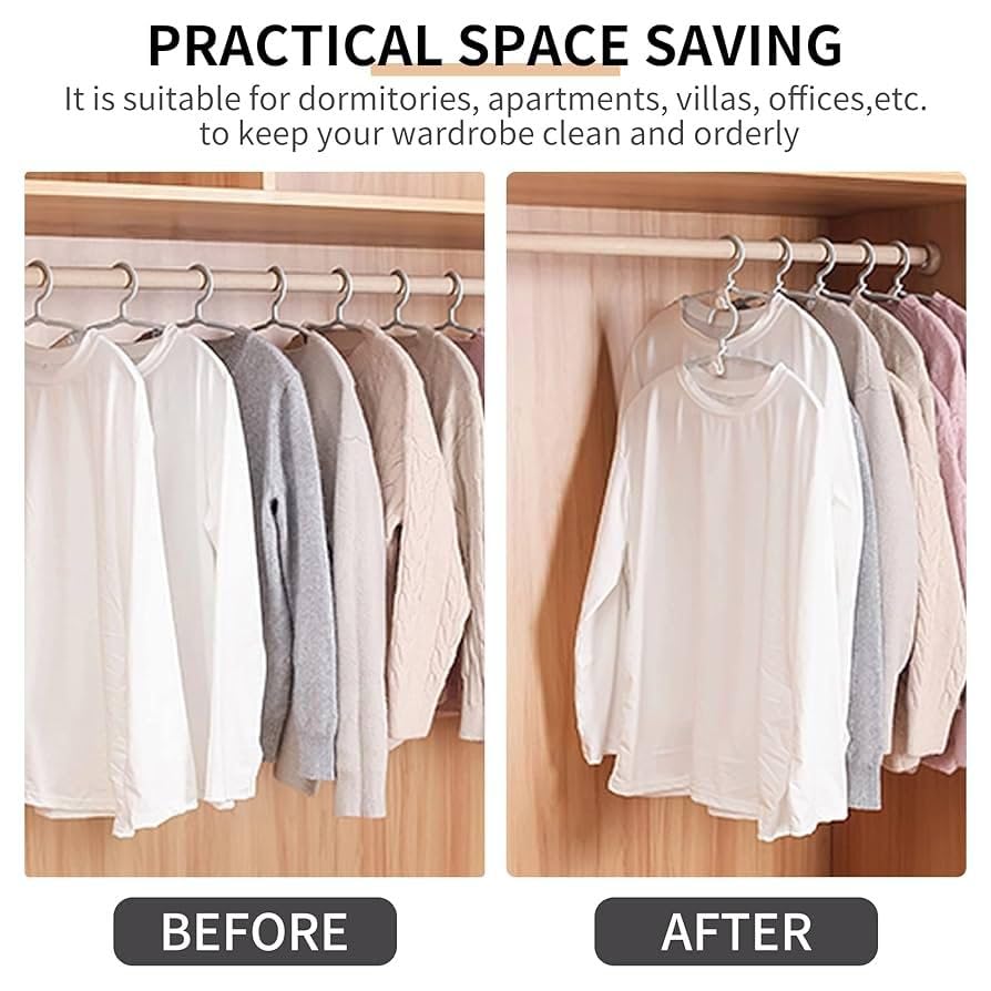 - <li><strong>توفير مساحة مضاعفة:</strong> تصميم ذكي يتيح تعليق عدة قطع ملابس في شماعة واحدة، مما يجعل خزانة الملابس أكثر ترتيبًا ويوفر مساحة كبيرة دون الحاجة لخزانة إضافية.</li>