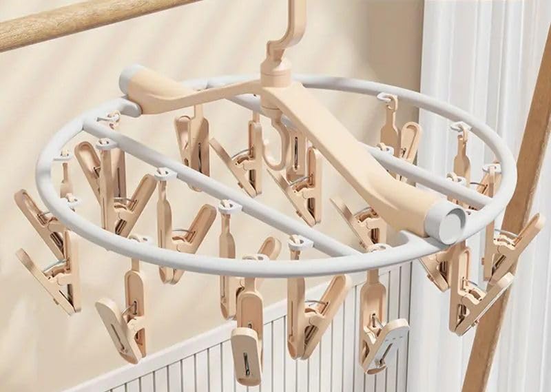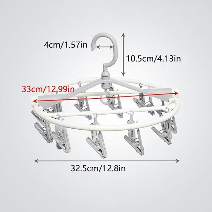 - Practical round design with 20 clips for drying socks and small clothes easily.