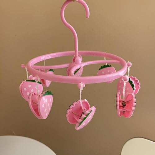 Generic - شماعة لتجفيف الملابس متعددة الاستخدامات وموفرة للمساحة للاستخدام الداخلي مع 8 مشابك وخطافات تزيينية على شكل فراولة لتجفيف الشرابات والملابس الداخلية مثالية لمهام الغسيل اليومية، لون وردي فاتح