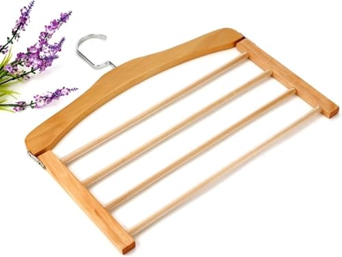 Generic - Clothes Hangers/Coat Hangers Wooden Pants Hangers, Space Saving Closet Hangers, 4 Layers Multi Functional Pants Rack, Metal Hook and Foldable Wardrobe Organizer Racks, for Clothes,Light Grey,One Size