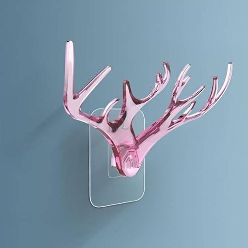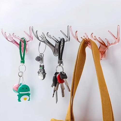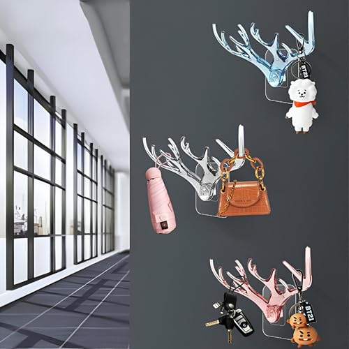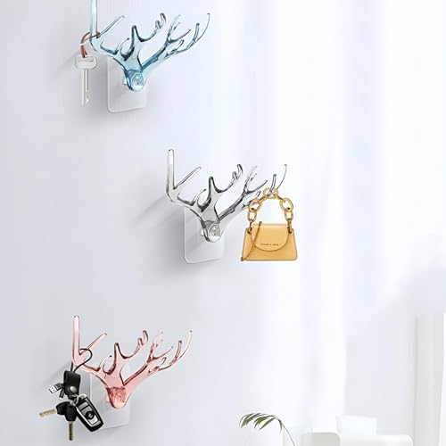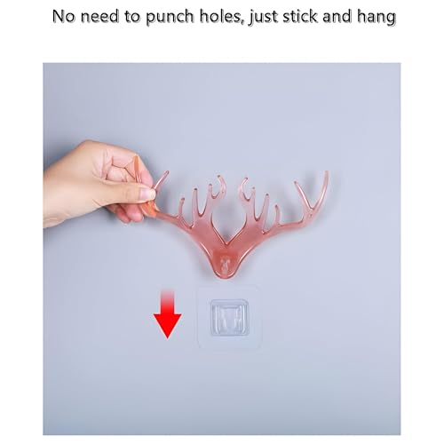 Generic - Clothes Hooks - Set of 3 Rustic Elk Antlers Wall Hooks, Adhesive Clear Plastic Hangers for Effectively Store Hats, Keys, Scarves, Ties and Belts