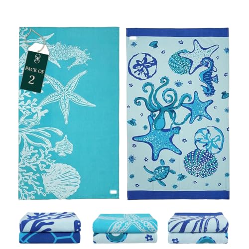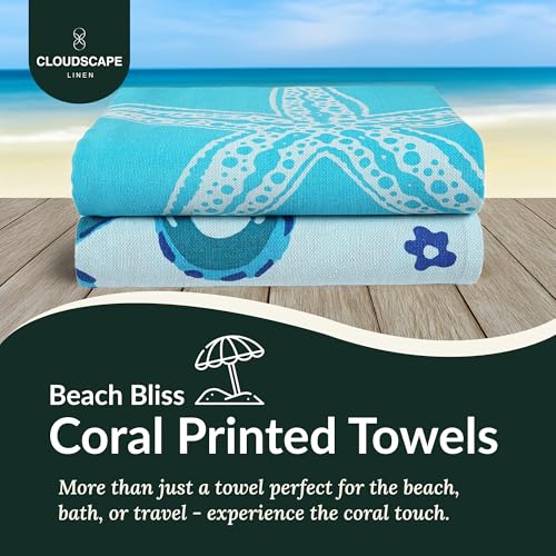 CLOUDSCAPE LINEN - Cloud Scape Linen Beach Towels Set- 100% Cotton, 39x71 inches, Quick Dry and Highly Absorbent Towels, Perfect for Vacation, Pool, Yoga, Camping,-STARFISH & SERENADE