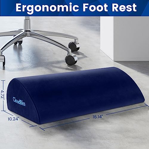 CloudBliss - CloudBliss Foot Rest for Under Desk at Work,Office Desk Accessories with Soft Foam and Washable Removable Cover, Foot Stool for Office, Car, Home to Foot Support and Relax Ankles, Blue