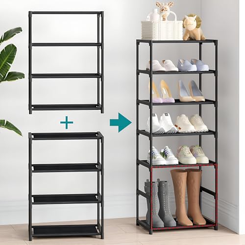 - [قابلة للتكديس والتوسع] اشترِ وحدتين أو أكثر يمكن تكديسهما عموديًا لتوفير مساحة تخزين أكبر بنفس المساحة. أو قم بتوصيلها أفقيًا لتوسيع رف الأحذية النحيف، ودمج رفوف الأحذية الصغيرة في رف أحذية كبير، حتى تتمكن من ارتداء المزيد من الأحذية