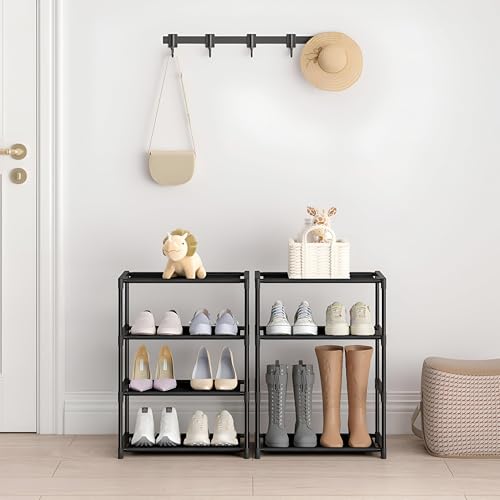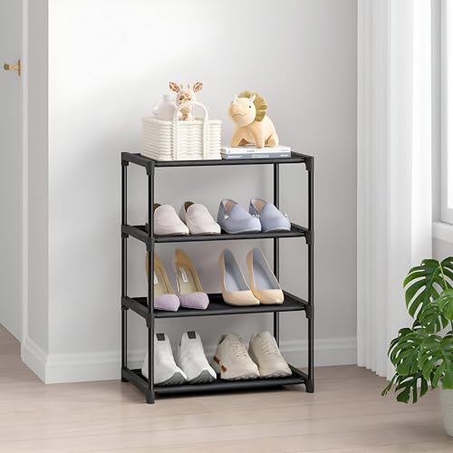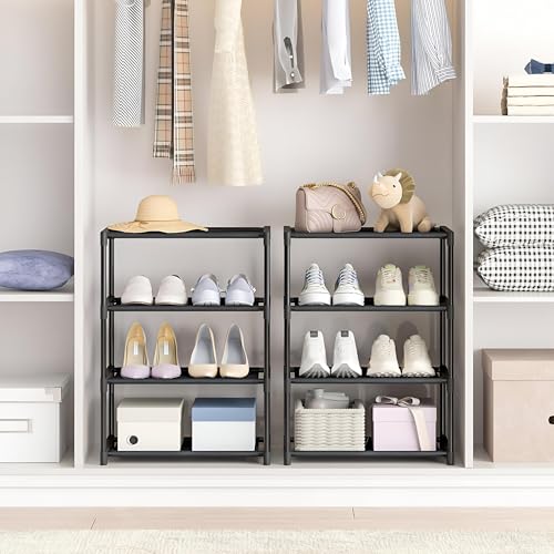 Generic - تخزين خالٍ من الفوضى - رف احذية من 4 طبقات لتنظيم فعال، قابل للتكديس وصغير الحجم، مصمم للاطفال والكبار، مثالي للخزانات والمداخل وغرف النوم