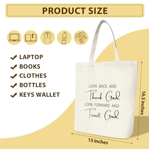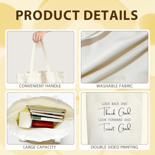 CMHIE - CMHIE Christian Gift Canvas Tote Bag for Women, Thank God and Trust God Christian Aesthetic Tote Bags Large Capacity Bag Gifts, Beach Bags Shopping Bags Shoulder Bag Reusable Grocery Bags - 21, White